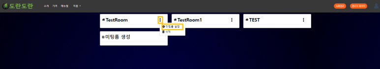 1. 개설한 미팅룸의 점 세 개 > 미팅룸 설정 클릭