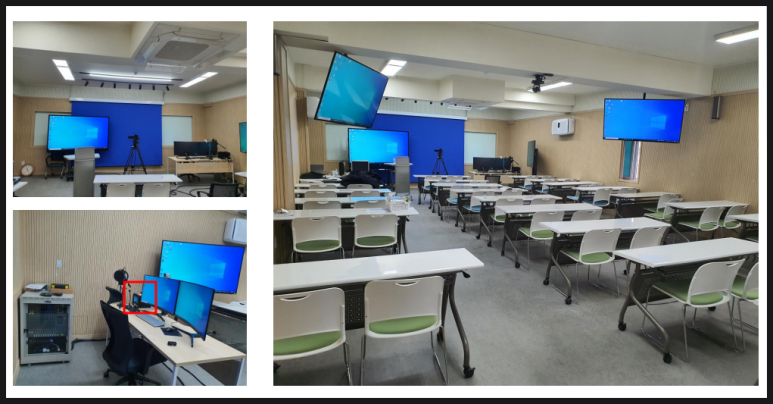 - 디지털미디어센터, 온라인 스튜디오에서 촬영한 영상, 실시간 수업 영상, 편집된 영상 등을 각 반 교실 TV로 송출