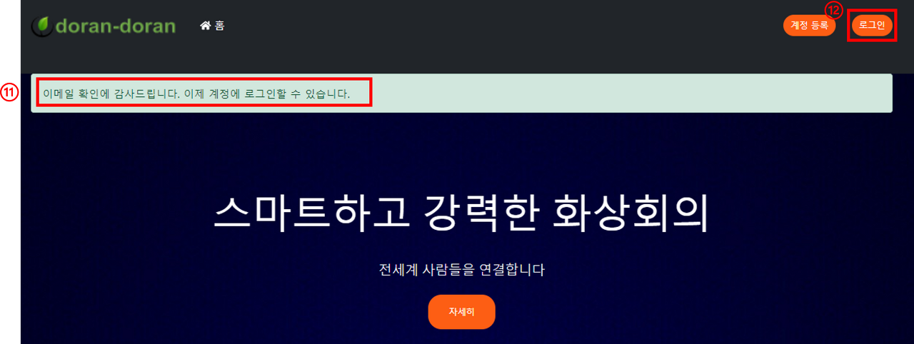 (11) 이메일 링크를 눌러 그림과 같은 메시지가 출력이 되면 인증 완료입니다.