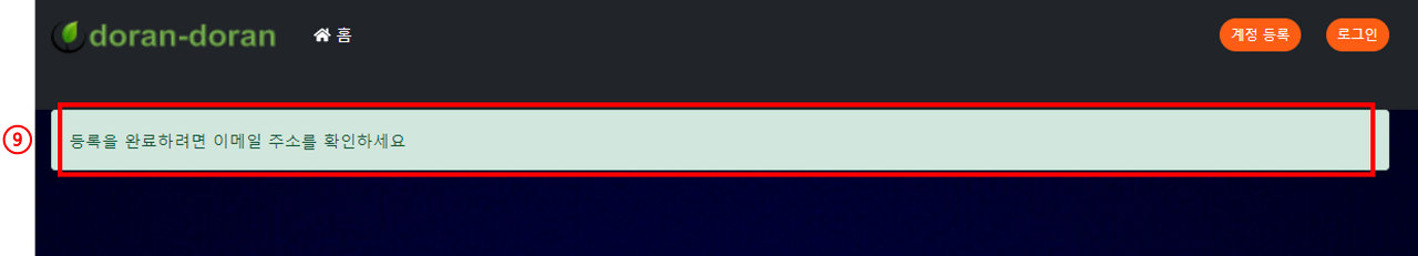 (9) 계정 등록 버튼을 누르면 그림과 같이 인증을 위한 메일이 발송되며