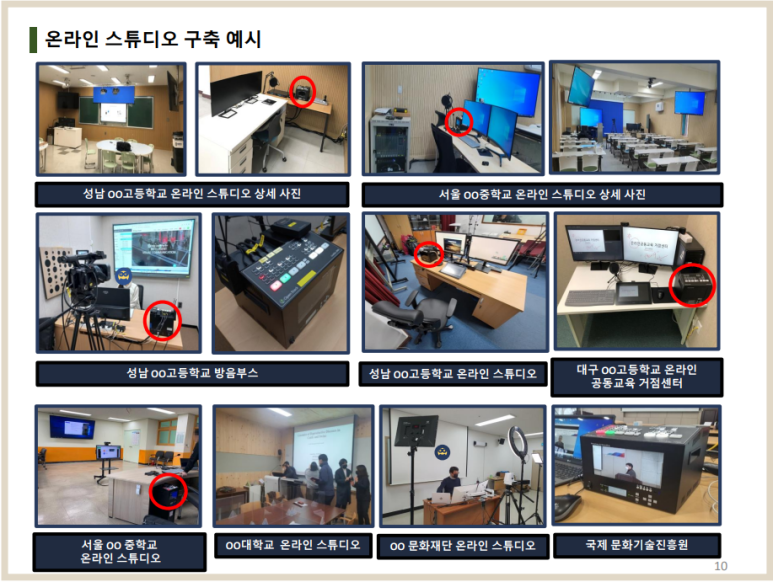 - 또한 기 구축된 온라인 학교, 방음부스, 온라인 스튜디오에서 각 반 교실까지 실시간 송출이 가능하여 대면, 비대면 수업을 동시 지원 가능합니다.
