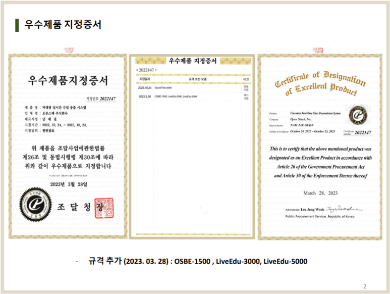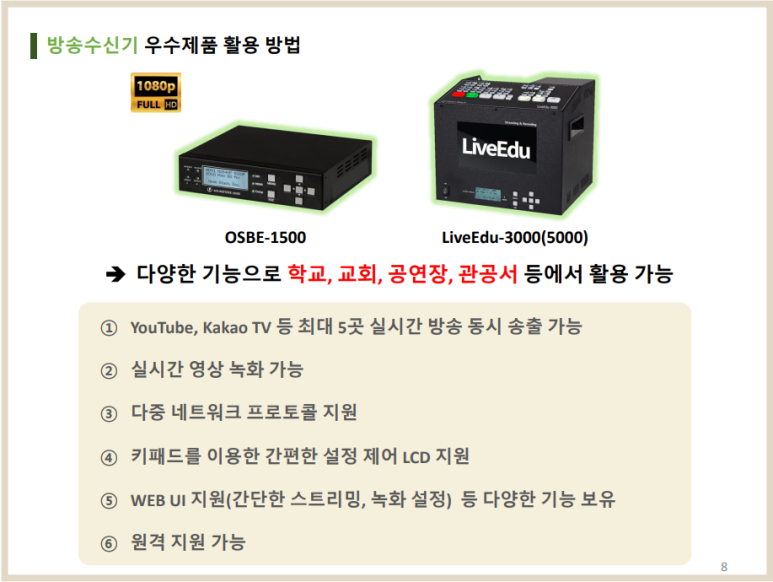 더불어, OSBE-1500 , LiveEdu-3000, LiveEdu-5000 제품은