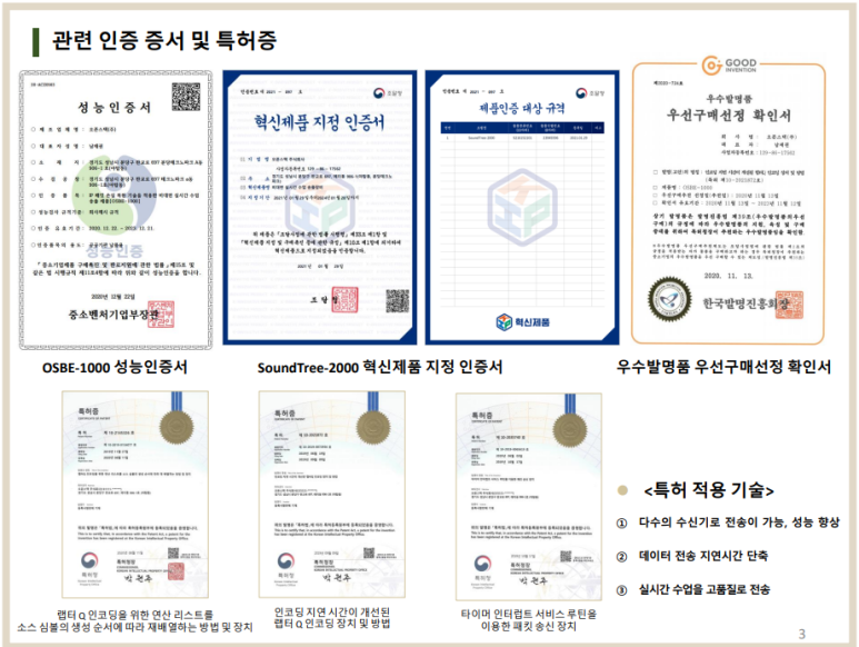 또한, 3개의 특허 적용 기술이 인증되어 우수 제품으로 지정받았는데요,