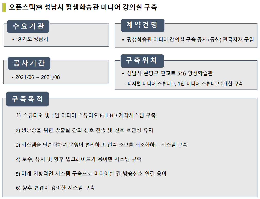 - 계 약 건 명 : 평생학습관 미디어 강의실 구축 공사(통신) 관급자재 구입