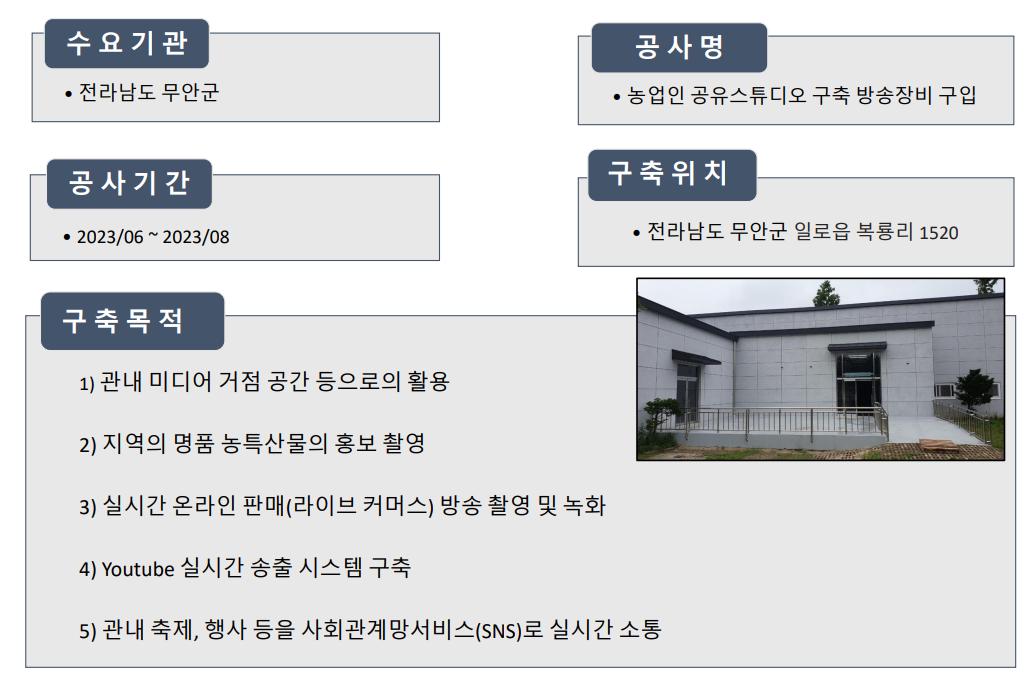 - 사 업 명 : 농업인 공유스튜디오 구축 방송장비 구입