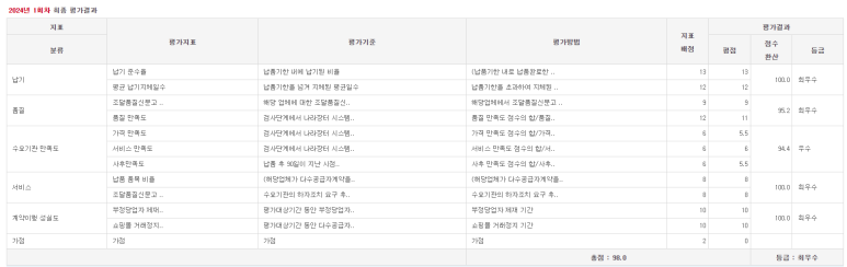 더불어, 서비스와 계약 이행 성실도 부문에서도 감점 없이 최우수 등급을 받았습니다.