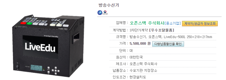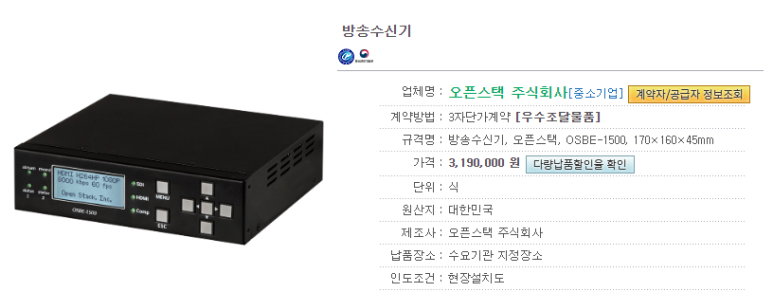 세부 품명 : 방송수신기 (5216152101) 에 특허 인증을 받은 우수조달제품으로 3개 제품을 추가 등재하였습니다.