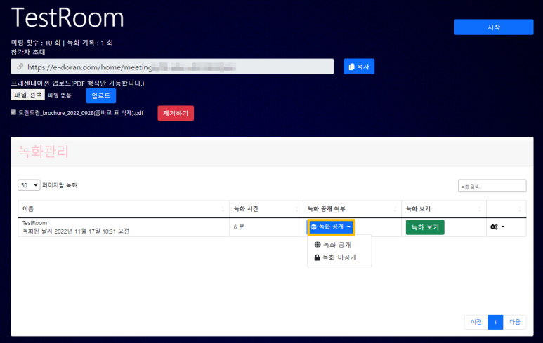 - 녹화 공개 탭 선택 - 녹화 공개 or 비공개 선택 가능
