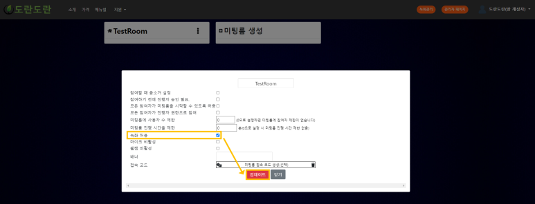 기능 설명에 앞서, 해당 기능은 방 개설 시 혹은 방 개설 후 녹화 허용 탭 체크가 필요합니다.