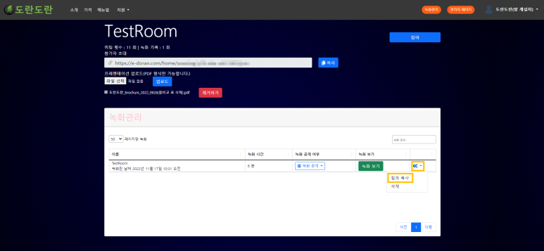 - 링크 공유로, 해당 녹화 장면 공유 가능