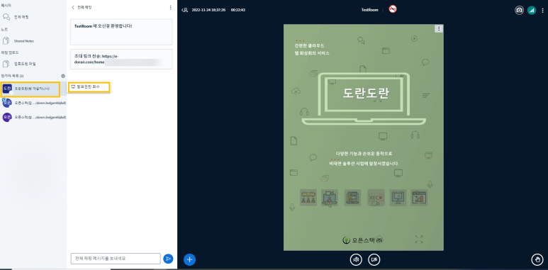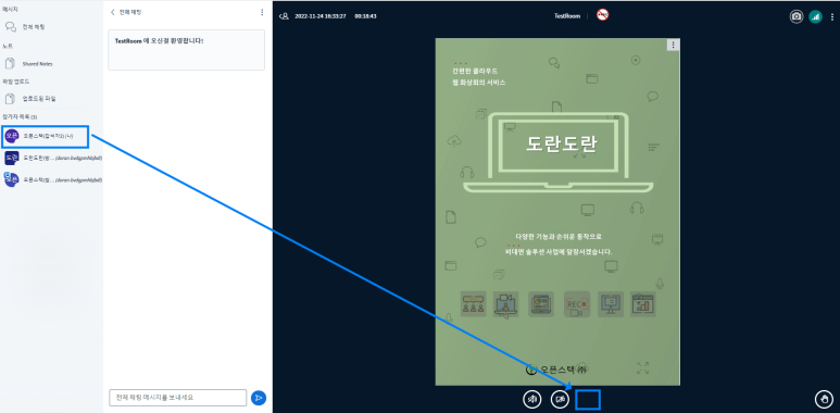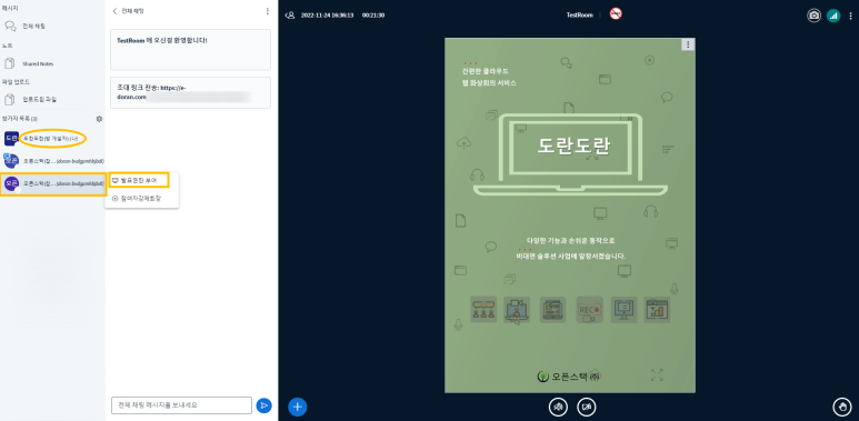[오픈스택] 화상회의 플랫폼 '도란도란' 기능 소개 - 6. 참석자 발표자 만들기(발표자 권한 부여하기)