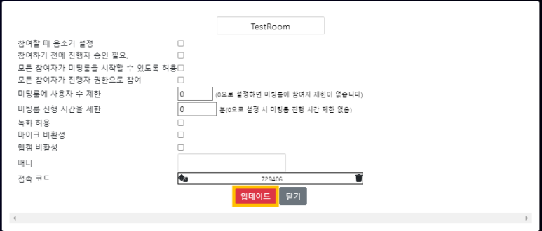 오늘은 설정 가능한 미팅룸 기능 중, 접속코드 기능 사용 방법에 대하여 안내드리고자 합니다.