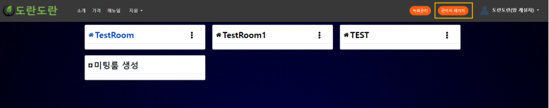 3. 따라서 아래와 같이 "관리자 페이지" 탭은 회원가입 후 미팅룸 개설 후 미팅 진행 시 이력을 확인할 수 있습니다.