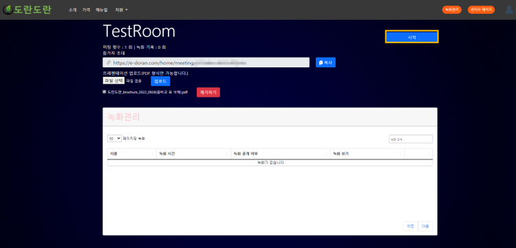 4. 파일 업로드 후 미팅룸 [시작] 버튼 누르기