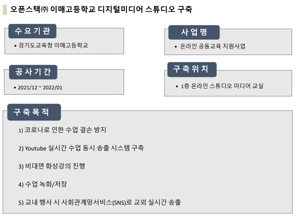 [오픈스택] 성남 이매고등학교 디지털미디어 스튜디오 구축