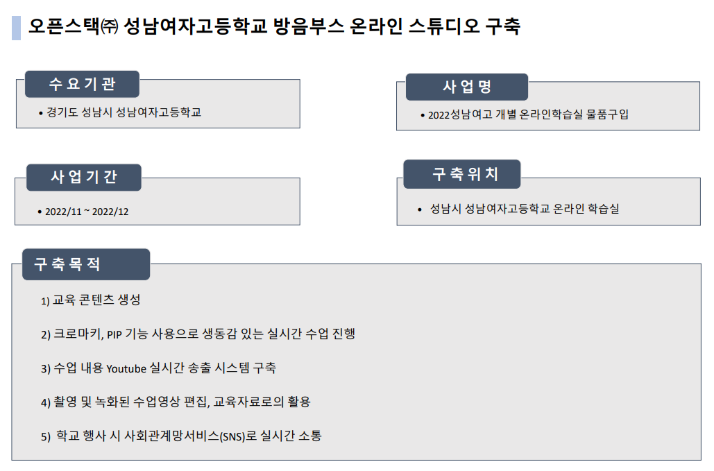 - 사 업 명 : 2022성남여고 개별온라인학습실 물품구입
