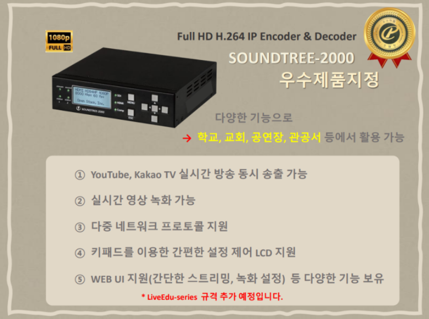 Youtube, Kakao TV 등 실시간 방송 동시 송출 가능, 실시간 영상 녹화 가능 등