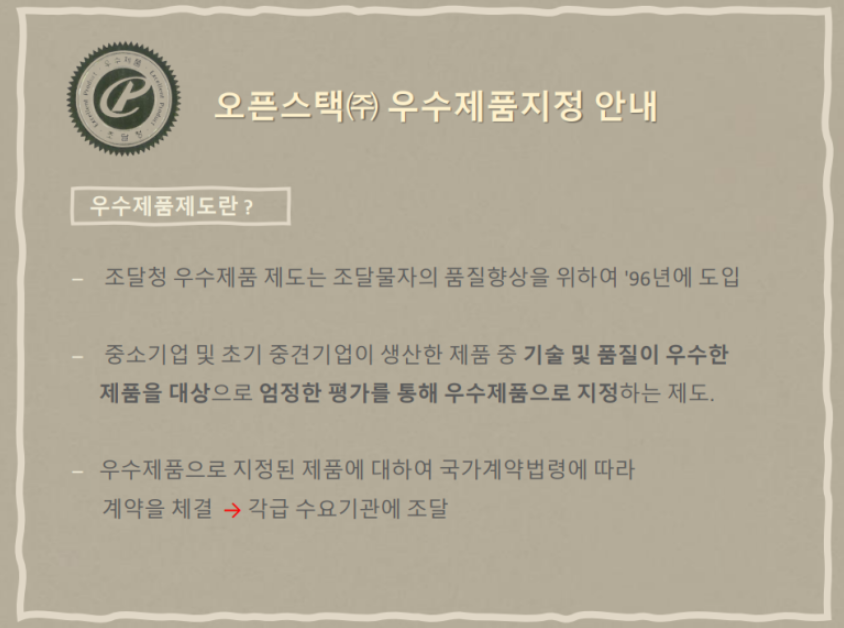 2022년 10월 24일자로 우수제품으로 지정받았습니다.