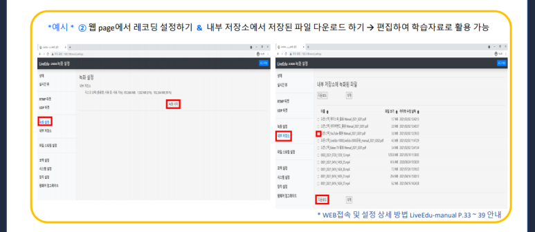 *녹화/저장 기능은 LiveEdu-5000(3자단가계약), LiveEdu-2000(다수 공급자 계약)만 가능
