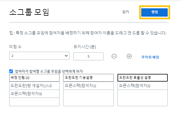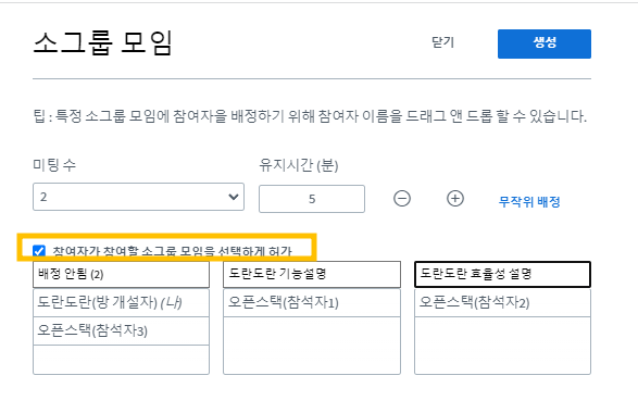 [오픈스택] 화상회의 플랫폼 '도란도란' 기능 소개 - 3. 소그룹 모임 생성